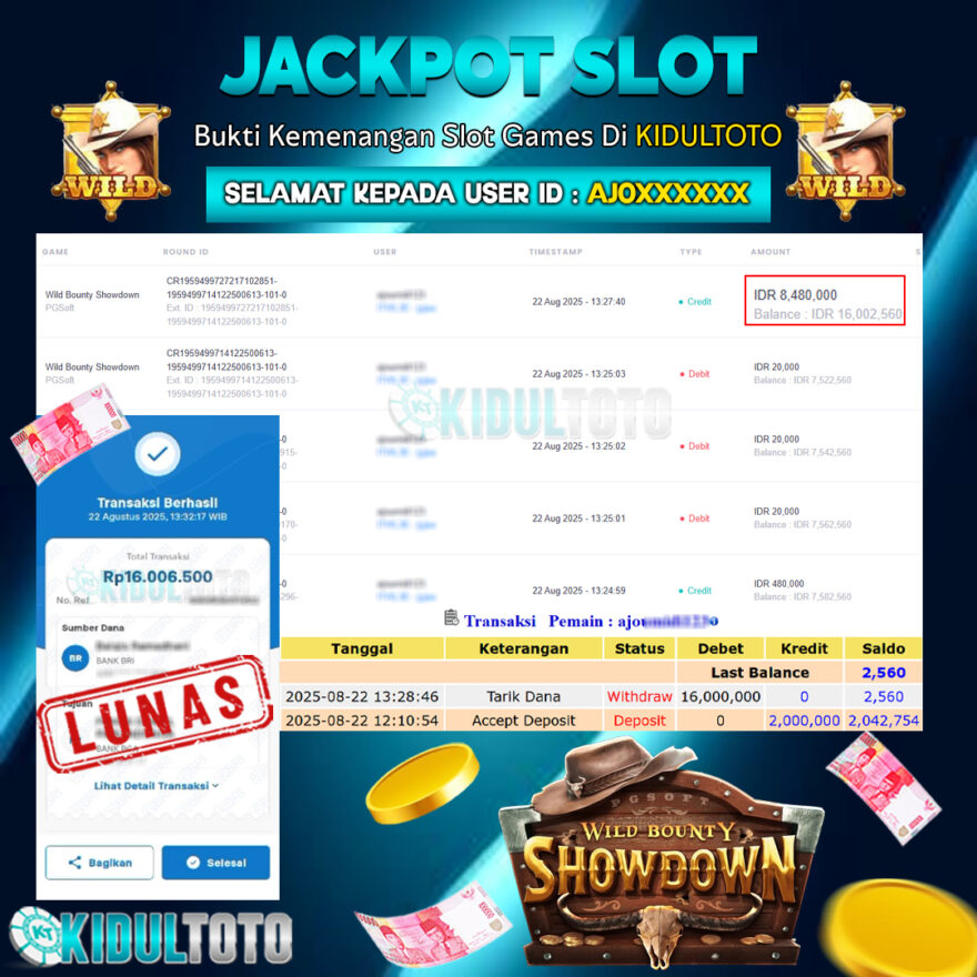 Kabar gembira datang dari KIDULTOTO! Salah satu member setia kami, dengan User ID AJO****** berhasil mencetak kemenangan besar senilai 16.000.000 . Kemenangan fantastis ini menjadi bukti nyata bahwa keberuntungan bisa datang kapan saja bagi siapa saja yang bermain dengan semangat dan strategi.